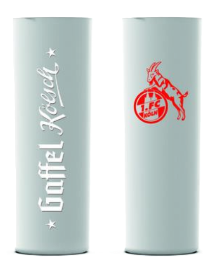 Neben der klassischen 0,2l Kölschstange das Szeneglas für den Kölschtrinker. Der Schriftzug Gaffel Kölsch ist dabei als Relief-Dekor, ein erhabener Deco-Touch Schriftzug in Weiß, gestürzt auf das Glas gedruckt.